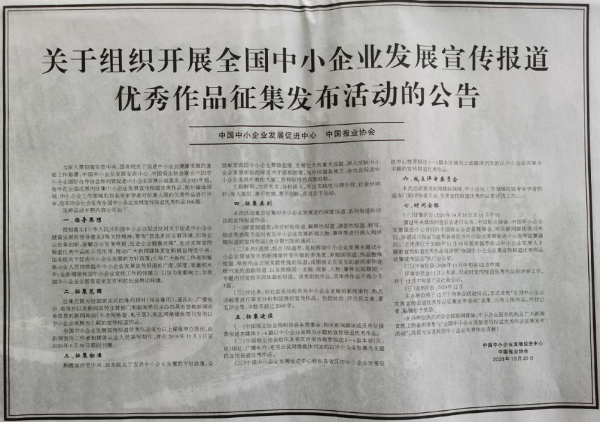 全國中小企業(yè)發(fā)展宣傳報(bào)道優(yōu)秀作品征集發(fā)布活動(dòng)正式啟動(dòng)